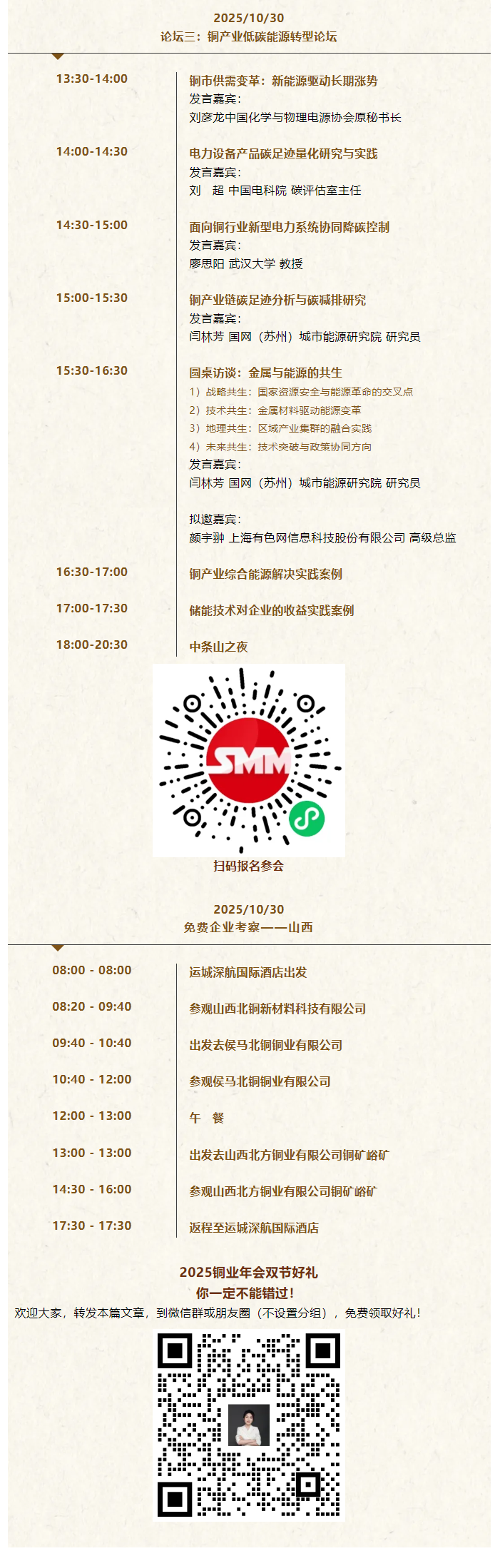 在全球铜产业面临供需格局重塑、技术创新加速、绿色转型迫切的背景下,2025(第十四届)SMM铜业年会暨山西省第二届铜基新材料产业链发展大会将于中国山西降重召开。