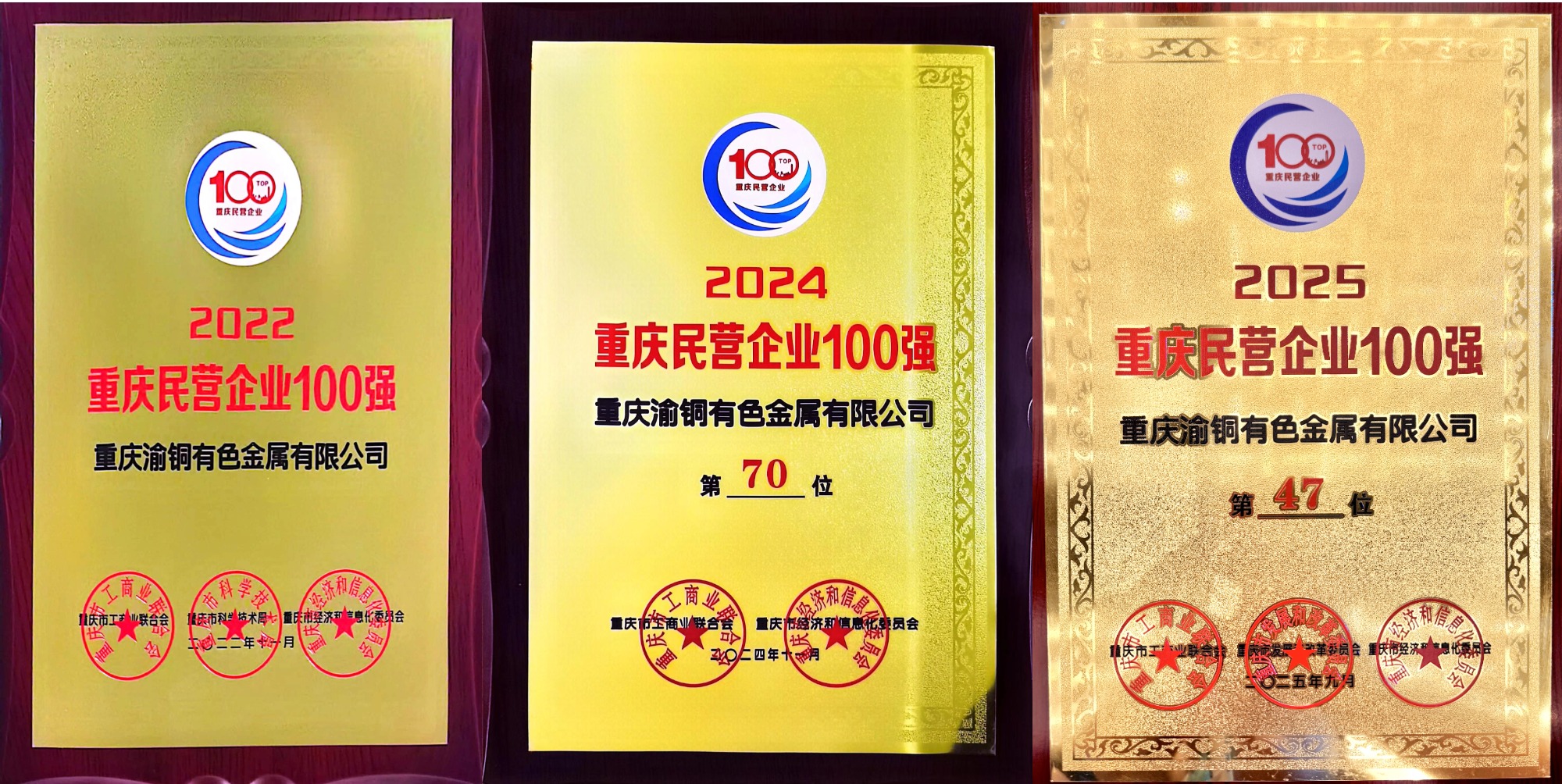 重庆渝铜有色金属有限公司,成立于2020年9月,总部位于重庆市九龙坡区。公司以有色金属贸易为核心,纵向延伸至资源勘探、原料采购,横向拓展到加工定制、仓储物流、金融服务等领域,形成闭环式产业服务体系。作为区域型行业龙头企业,我们始终践行和着力构建创新型、数字化有色金属产业全链生态系统,创新打造 “全链条一体化” 商业模式,不仅为客户提供高品质的有色金属产品,还通过定制化解决方案,满足不同客户的多样化需求;依托数字化平台,实现供应链的高效协同与透明化管理,为行业发展树立了标杆,在提升运营效率的同时,也极大增强了自身在行业内的知名度与影响力。公司连续五年入围重庆市民营企业百强,荣获“优秀民营企业”“经济社会发展先进企业”等称号。