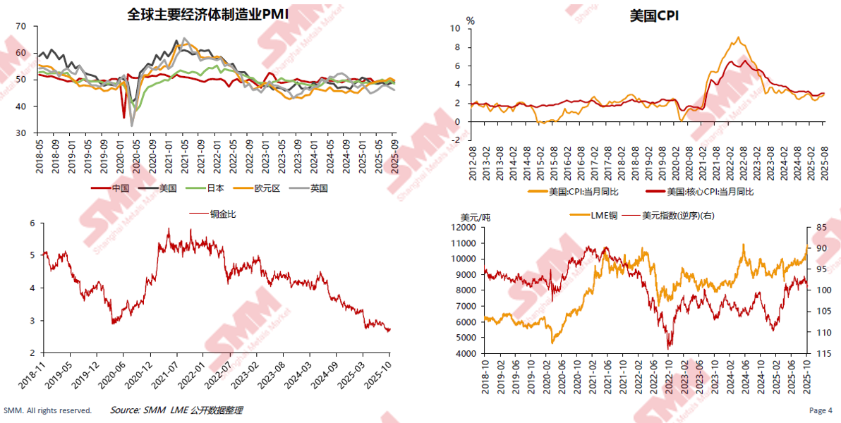 其结合近年来全球主要经济体制造业PMI、美国CPI、铜金比以及LME铜和美元指数(逆序)等的走势变化进行了阐述。