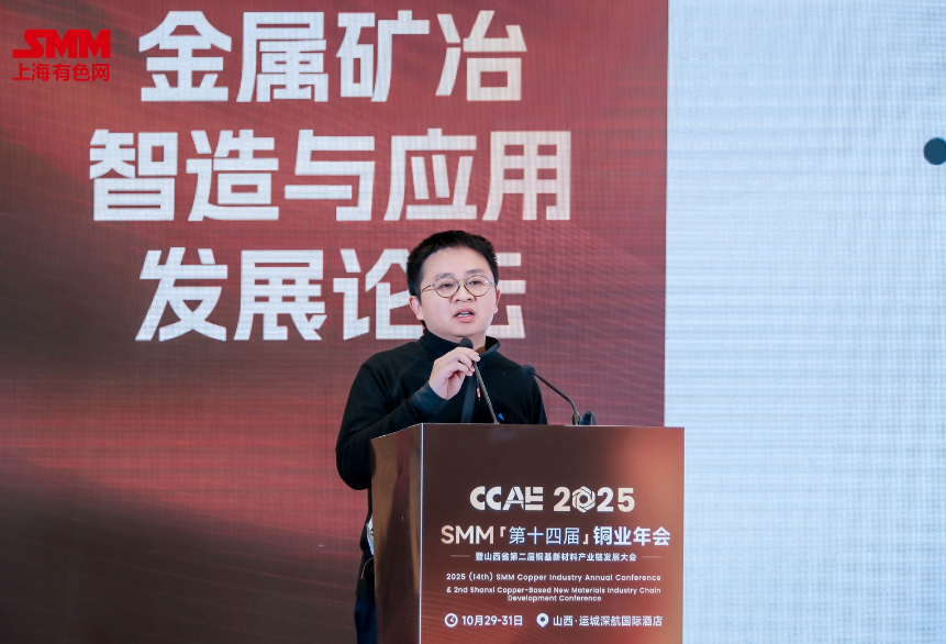 10月29日,在由上海有色网信息科技股份有限公司(SMM)、中条山有色金属集团有限公司主办的CCAE 2025 SMM(第十四届)铜业年会暨山西省第二届铜基新材料产业链发展大会——金属矿冶智造与应用发展论坛上,上海东证期货有限公司首席分析师曹洋分享了“宏观视角下铜市场未来展望”。